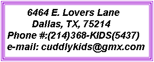 Cuddly Kids Curriculum includes: * Story Time *Creative Art *Science *Math *Music *colors, Shapes and Numbers *Movie Center *Language